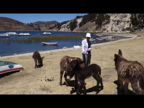 Wir wollen heute den etwa 15km langen Insel-Wanderweg laufen, auf der einen Seite bis zum Nordende, auf der anderen Seite wieder zurück. Viele Höhenmeter stehen uns bevor, mehrfach geht aus auf die vielen kleinen 4000er Gipfel der Insel hoch und danach wieder einige Meter runter. Der Boden unter uns verändert sich alle 100m: blanker Fels, Schiefer, Geröll, Stufen aus Felssteinen. Die Insel ist im Prinzip eine schräg hoch geschobene Erdplatte, mit wenigen Schritten kann man tausende Jahre Erdgeschichte durchwandern. Doch der Ausblick ist noch viel imposanter, die Buchten der Insel liegen wie gemalt im strahlend blauen Wasser des Sees, die Hänge mit ihren verschiedenen Formationen bilden unendlich viele Motive. Immer wieder begegnen uns Frauen mit kleinen Herden von Schafen, Eseln und Rindern. Aber auf vielen Abschnitten des Weges sind wir alleine, selten kommen uns andere Wanderer entgegen.